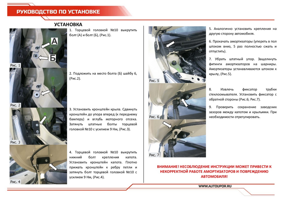 - Штатный угол открытия капота - благодаря индивидуальной разработке для каждого автомобиля.