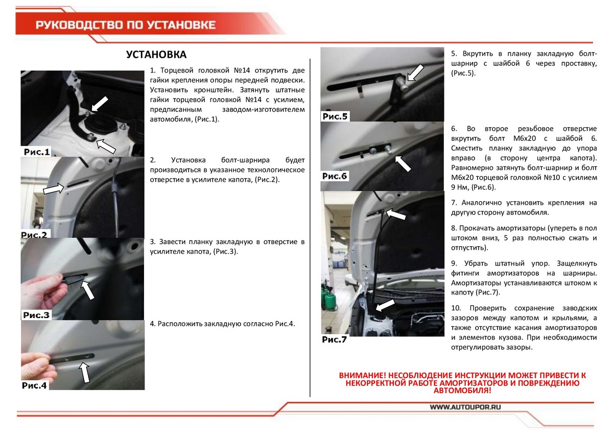- Штатный угол открытия капота - благодаря индивидуальной разработке для каждого автомобиля.
