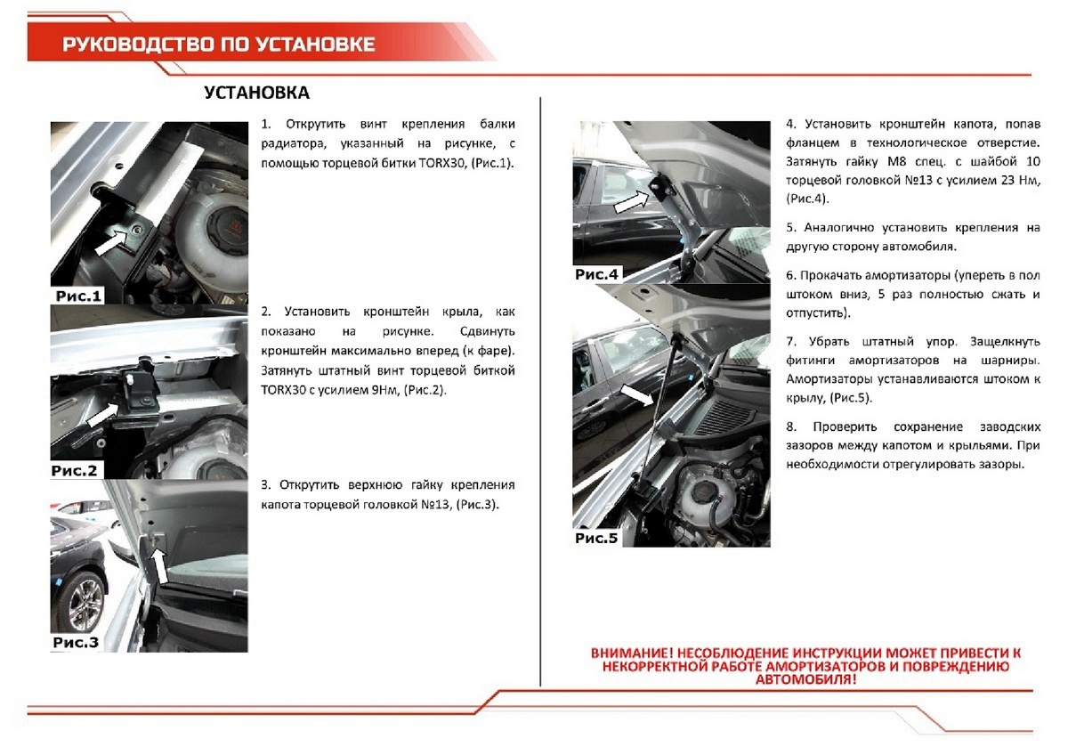 - Штатный угол открытия капота - благодаря индивидуальной разработке для каждого автомобиля.
