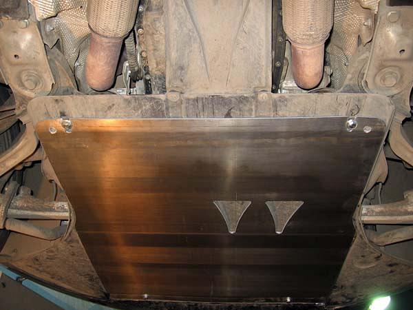 Защита картера и КПП (02.1008) Sheriff изготовлена из алюминия толщиной 5 мм специально для автомобиля AUDI A 8 2002 - 2010. Данное изделие обеспечивает надежную защиту от механических воздействий, предохраняет подкапотное пространство от попадания грязи и пыли, а также способствует улучшению аэродинамики автомобиля за счет оптимизации обтекаемости моторного отсека снизу.