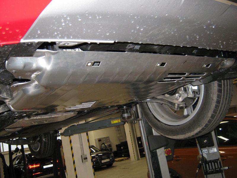 Защита картера и КПП (02.3493 V1) Sheriff изготовлена из алюминия толщиной 3 мм специально для автомобиля AUDI Q3 2019 -. Данное изделие обеспечивает надежную защиту от механических воздействий, предохраняет подкапотное пространство от попадания грязи и пыли, а также способствует улучшению аэродинамики автомобиля за счет оптимизации обтекаемости моторного отсека снизу.