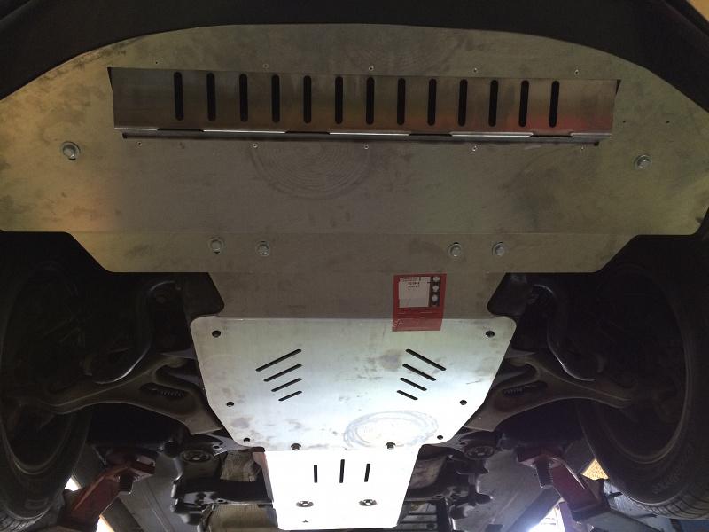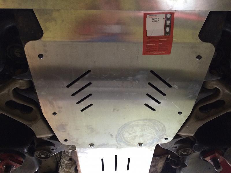Защита картера (02.1021) Sheriff изготовлена из алюминия толщиной 5 мм специально для автомобиля AUDI Q 7 2006 - 2015. Данное изделие обеспечивает надежную защиту от механических воздействий, предохраняет подкапотное пространство от попадания грязи и пыли, а также способствует улучшению аэродинамики автомобиля за счет оптимизации обтекаемости моторного отсека снизу.
