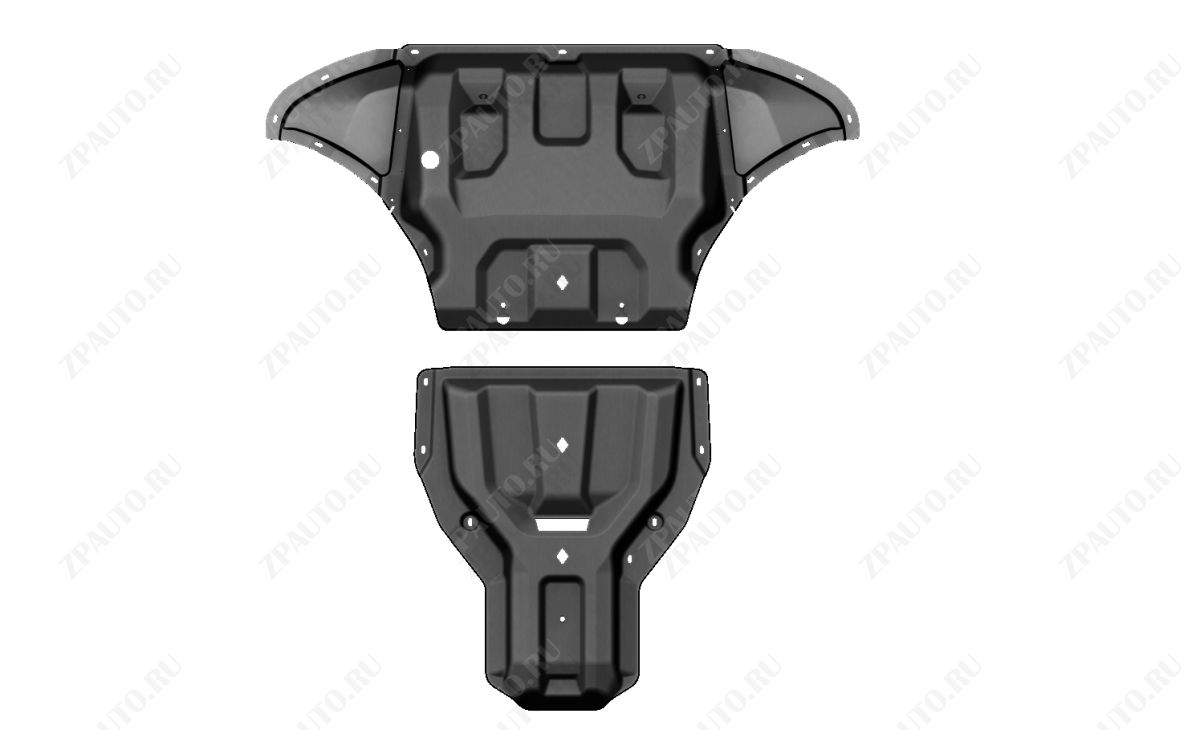 • Комплектация: Защита картера двигателя и КПП, монтажный комплект (кронштейны, болты).