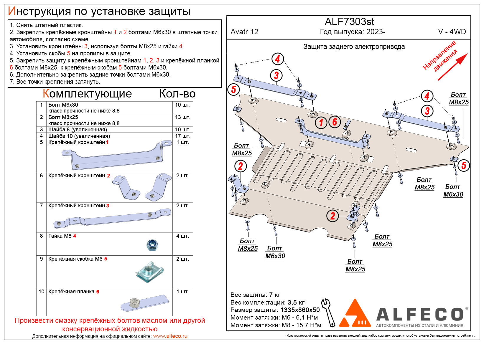 Защита заднего электропривода ALFeco арт. ALF7303al изготовлена из алюминия толщиной 4 мм специально для автомобиля Avatr 12 2023-. Обеспечивает надежную защиту агрегатов от механических повреждений и попадания дорожной грязи и других предметов, встречающихся на проезжей части, способных зачастую нанести серьезный вред автомобилю. В комплекте идет весь необходимый крепеж для установки. Наличие можно уточнить по телефону. Возможна установка в нашем автосервисе по предварительной записи