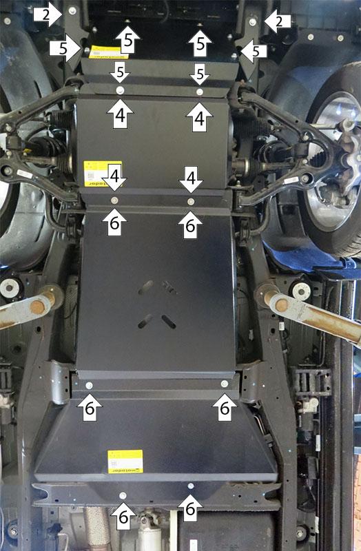 Защита (Двигатель, Задний дифференциал, Коробка переключения передач, Раздаточная коробка) Motodor 30103 изготовлена из стали толщиной 3 мм специально для автомобиля Cadillac Escalade 2015-. Обеспечивает надежную защиту агрегатов от механических повреждений и попадания дорожной грязи и других предметов, встречающихся на проезжей части, способных зачастую нанести серьезный вред автомобилю. В комплекте идет весь необходимый крепеж для установки. Срок поставки защиты составляет 1-3 дня, наличие можно уточнить по телефону. Возможна установка в нашем автосервисе по предварительной записи