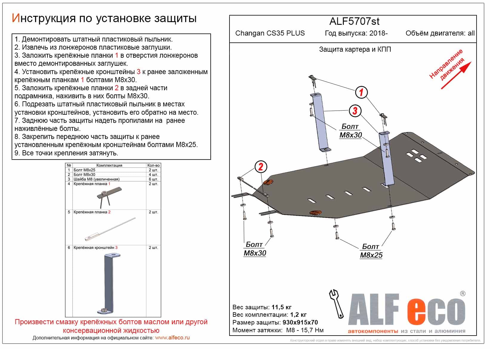 Защита картера и КПП ALFeco арт. ALF5727al изготовлена из алюминия толщиной 4мм специально для автомобиля Changan CS35 PLUS 2018-. Обеспечивает надежную защиту агрегатов от механических повреждений и попадания дорожной грязи и других предметов, встречающихся на проезжей части, способных зачастую нанести серьезный вред автомобилю. В комплекте идет весь необходимый крепеж для установки. Наличие можно уточнить по телефону. Возможна установка в нашем автосервисе по предварительной записи