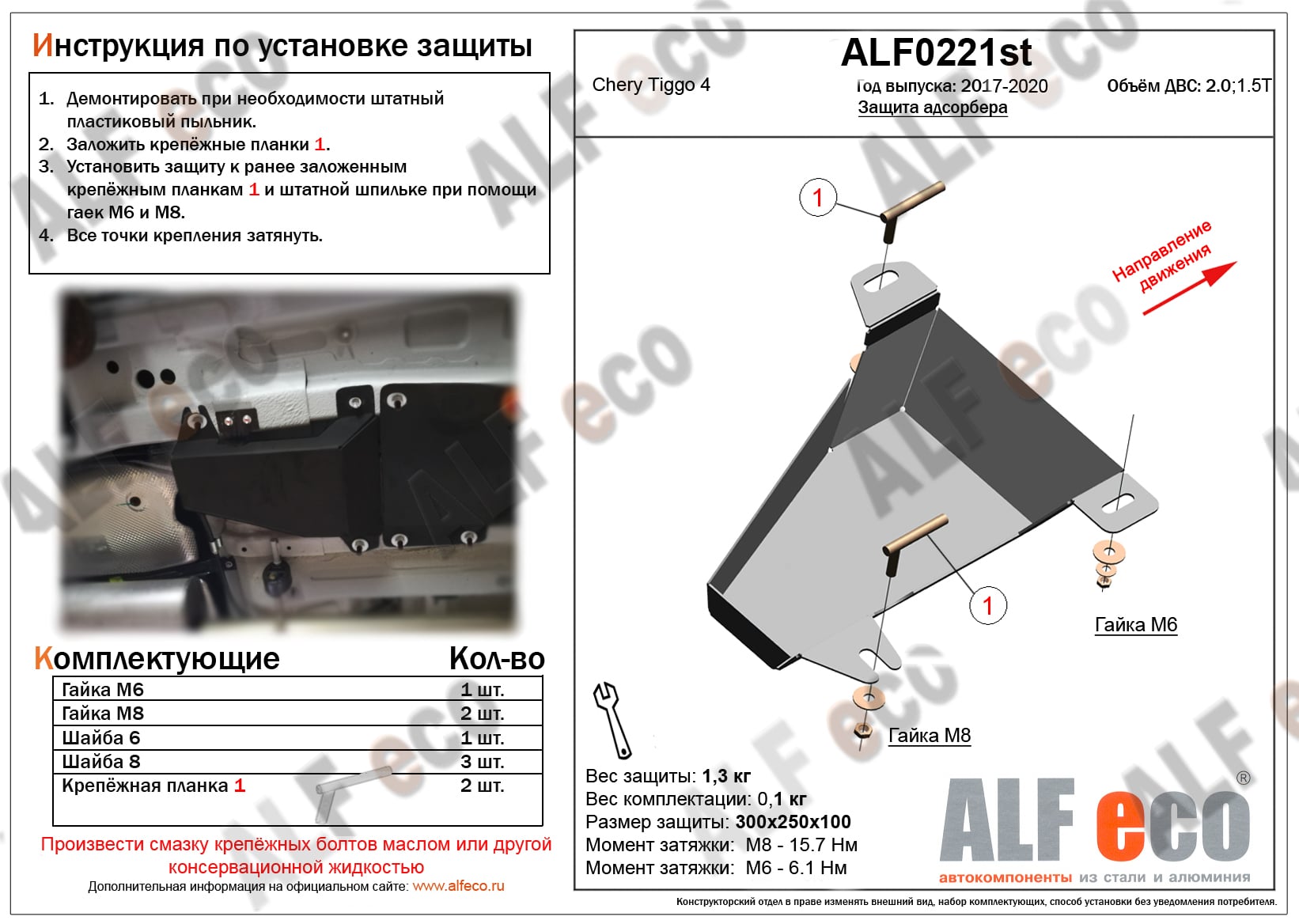 Защита приводного ремня моторного отсека ALFeco арт. ALF0224al-4 изготовлена из алюминия толщиной 4мм специально для автомобиля Chery Tiggo 8 Pro 2021-. Обеспечивает надежную защиту агрегатов от механических повреждений и попадания дорожной грязи и других предметов, встречающихся на проезжей части, способных зачастую нанести серьезный вред автомобилю. В комплекте идет весь необходимый крепеж для установки. Наличие можно уточнить по телефону. Возможна установка в нашем автосервисе по предварительной записи