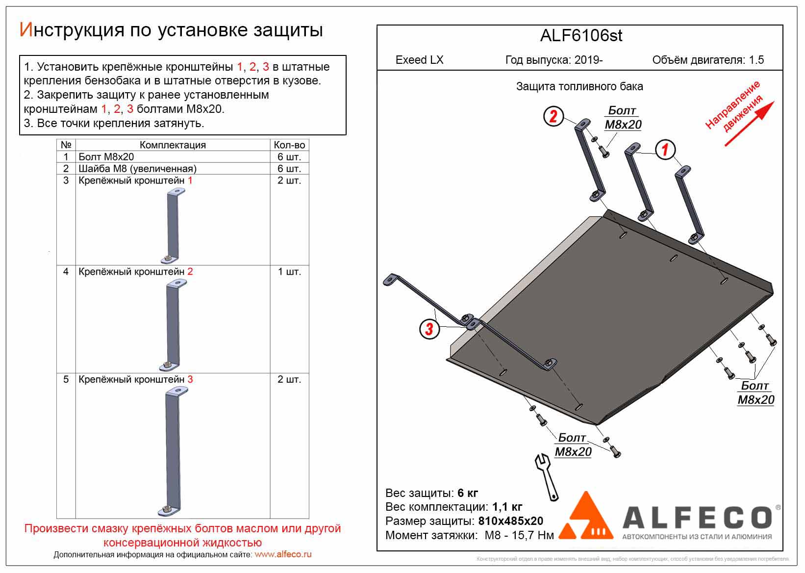 Защита топливного бака ALFeco арт. ALF6106al изготовлена из алюминия толщиной 4мм специально для автомобиля Exeed LX 2019-. Обеспечивает надежную защиту агрегатов от механических повреждений и попадания дорожной грязи и других предметов, встречающихся на проезжей части, способных зачастую нанести серьезный вред автомобилю. В комплекте идет весь необходимый крепеж для установки. Наличие можно уточнить по телефону. Возможна установка в нашем автосервисе по предварительной записи