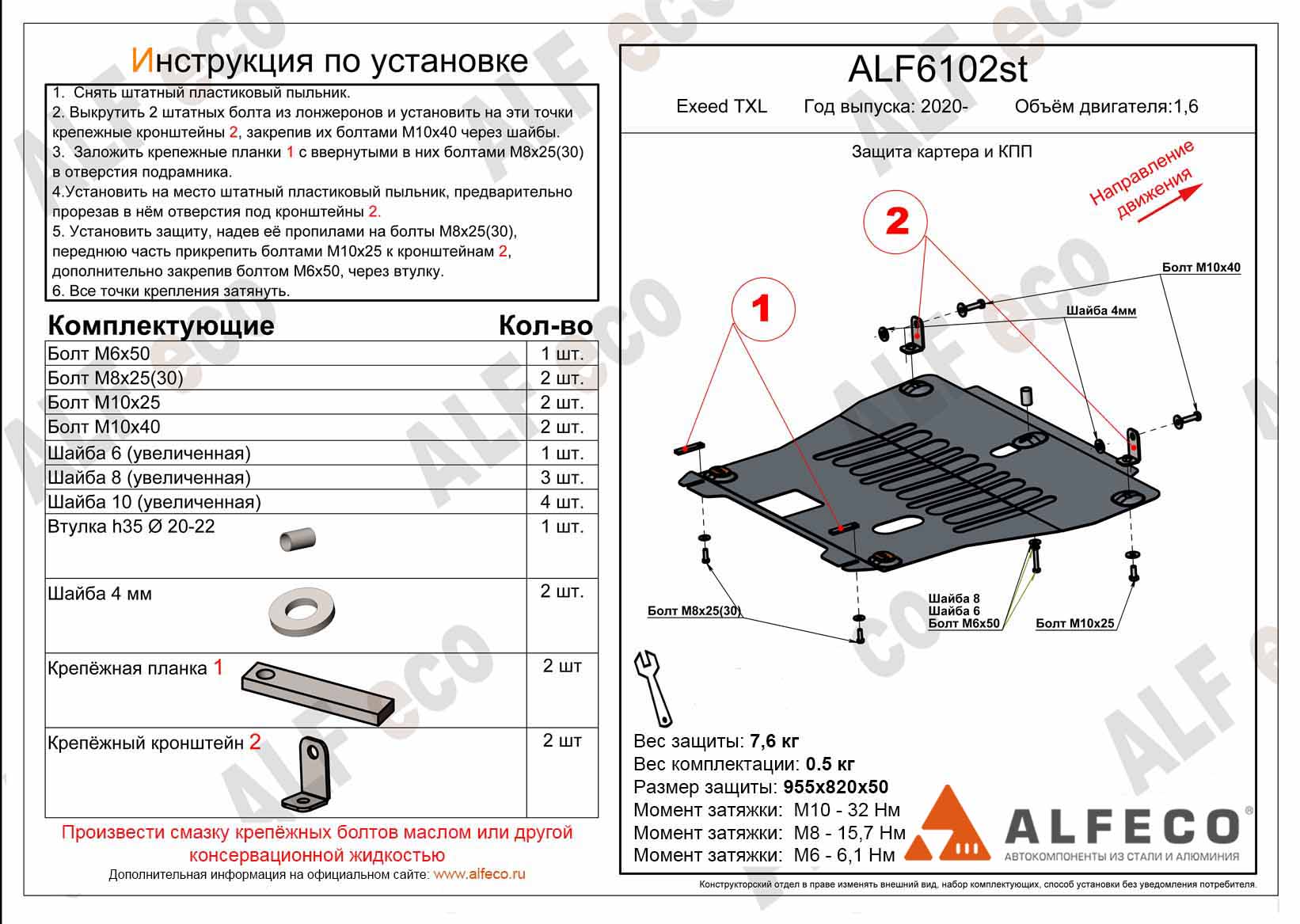 Защита картера и КПП (установка на кронштейны) ALFeco арт. ALF6102st изготовлена из стали толщиной 2мм специально для автомобиля Exeed TXL 2020-. Обеспечивает надежную защиту агрегатов от механических повреждений и попадания дорожной грязи и других предметов, встречающихся на проезжей части, способных зачастую нанести серьезный вред автомобилю. В комплекте идет весь необходимый крепеж для установки. Наличие можно уточнить по телефону. Возможна установка в нашем автосервисе по предварительной записи