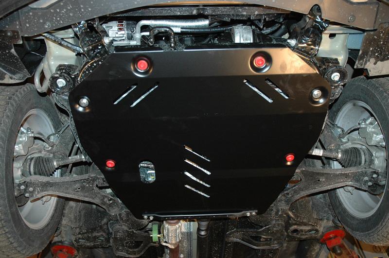 Защита картера и КПП (04.2142) Sheriff изготовлена из стали толщиной 2,0 мм специально для автомобиля CHEVROLET Captiva 2011 - 2014. Данное изделие обеспечивает надежную защиту от механических воздействий, предохраняет подкапотное пространство от попадания грязи и пыли, а также способствует улучшению аэродинамики автомобиля за счет оптимизации обтекаемости моторного отсека снизу.