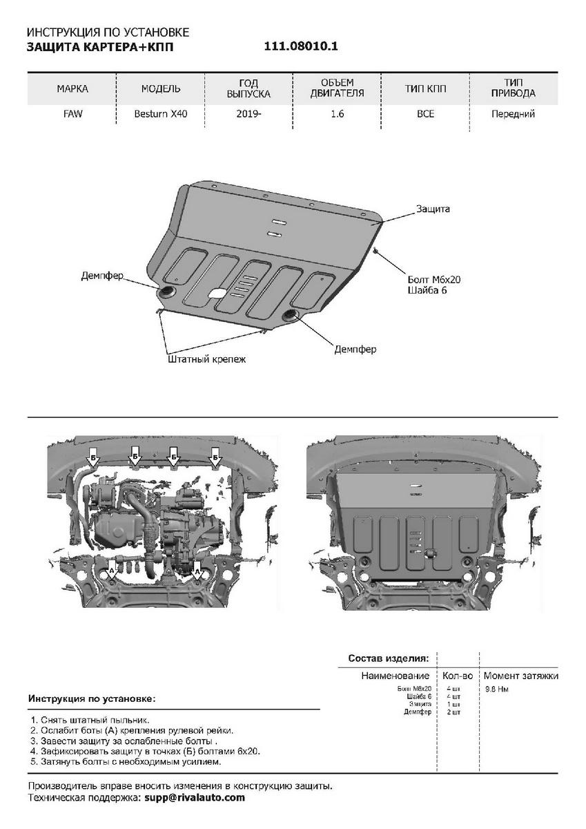 Приобретая стальную защиту 111.08010.1 АвтоБроня , вы можете установить ее в нашем сервисе. Стоимость установки составляет 1100 рублей, предварительно необходимо записаться по телефону на удобное для вас время.