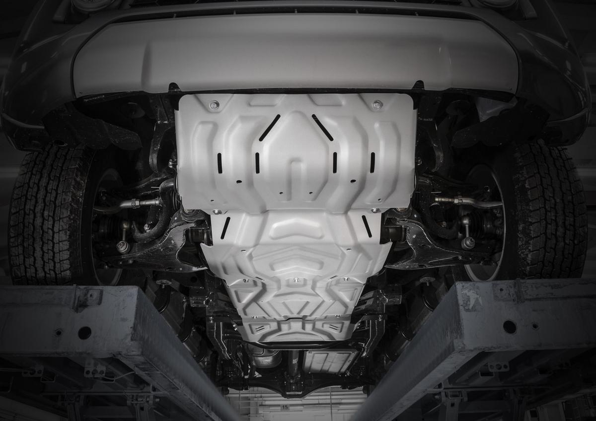 Защита радиатора, картера, КПП и РК Rival (усиленная, серая) для Fiat Fullback 2016-н.в., алюминий 4 мм/сталь 3 мм, 4 части, с крепежом, штампованная, K222.4052.1