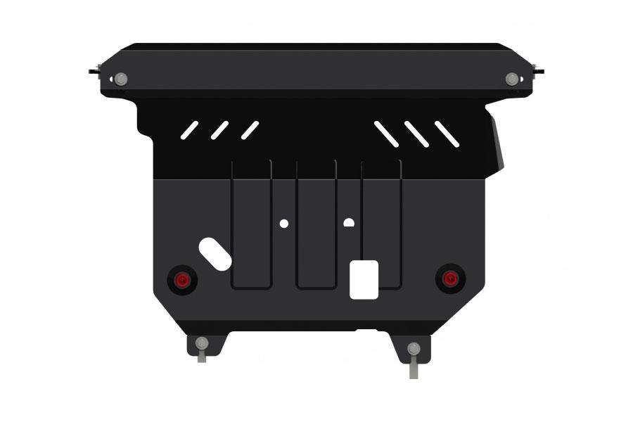 Защита картера и КПП (08.2507 V2) Sheriff изготовлена из стали толщиной 2,5 мм специально для автомобиля FORD EcoSport 2014 -. Данное изделие обеспечивает надежную защиту от механических воздействий, предохраняет подкапотное пространство от попадания грязи и пыли, а также способствует улучшению аэродинамики автомобиля за счет оптимизации обтекаемости моторного отсека снизу.