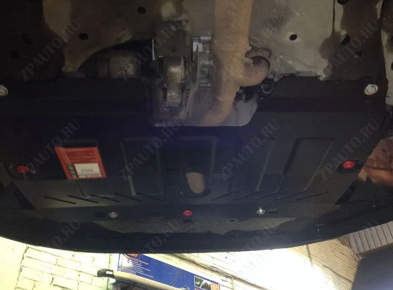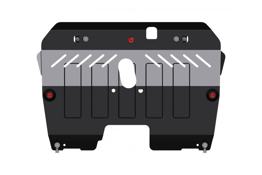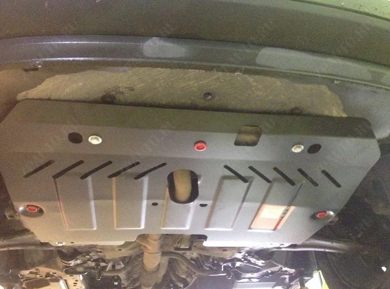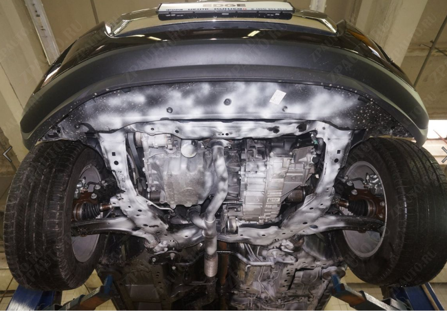 Защита картера и КПП (08.2496 V2) Sheriff изготовлена из стали толщиной 2,5 мм специально для автомобиля FORD Edge 2014 -. Данное изделие обеспечивает надежную защиту от механических воздействий, предохраняет подкапотное пространство от попадания грязи и пыли, а также способствует улучшению аэродинамики автомобиля за счет оптимизации обтекаемости моторного отсека снизу.