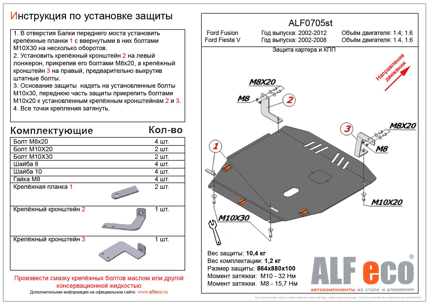 Защита картера и КПП ALFeco арт. ALF0705al изготовлена из алюминия толщиной 4мм специально для автомобиля Ford Fiesta Mk5 2002-2008. Обеспечивает надежную защиту агрегатов от механических повреждений и попадания дорожной грязи и других предметов, встречающихся на проезжей части, способных зачастую нанести серьезный вред автомобилю. В комплекте идет весь необходимый крепеж для установки. Наличие можно уточнить по телефону. Возможна установка в нашем автосервисе по предварительной записи