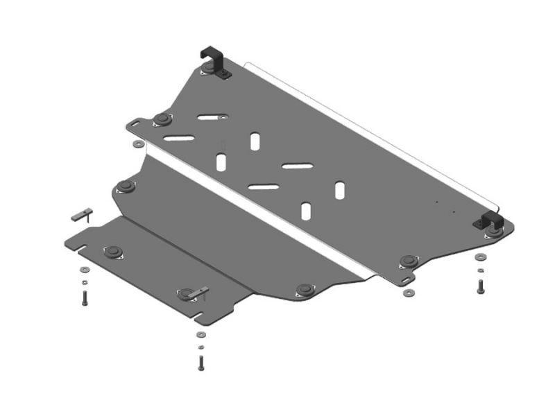 Обеспечивает надежную защиту агрегатов от механических повреждений и попадания дорожной грязи и других предметов, встречающихся на проезжей части, способных зачастую нанести серьезный вред автомобилю. В комплекте идет весь необходимый крепеж для установки.
