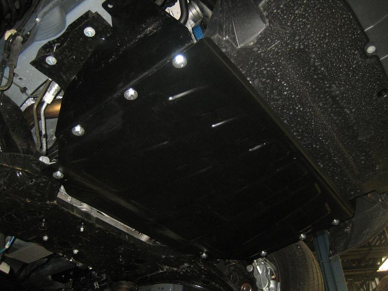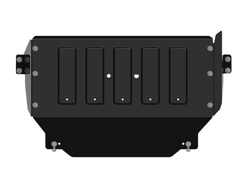Защита картера и КПП (08.2773) Sheriff изготовлена из стали толщиной 3 мм специально для автомобиля FORD Transit задний привод 2014 -. Данное изделие обеспечивает надежную защиту от механических воздействий, предохраняет подкапотное пространство от попадания грязи и пыли, а также способствует улучшению аэродинамики автомобиля за счет оптимизации обтекаемости моторного отсека снизу.
