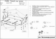 Стальная защита картера Sheriff арт. 08.0272 толщиной 2,0 мм специально для автомобиля Ford Transit . Обеспечивает надежную защиту агрегатов от механических повреждений и попадания дорожной грязи и других предметов, встречающихся на проезжей части, способных зачастую нанести серьезный вред автомобилю. В комплекте идет весь необходимый крепеж для установки. Срок поставки защиты составляет 1-3 дня, наличие можно уточнить по телефону. Возможна установка в нашем автосервисе по предварительной записи