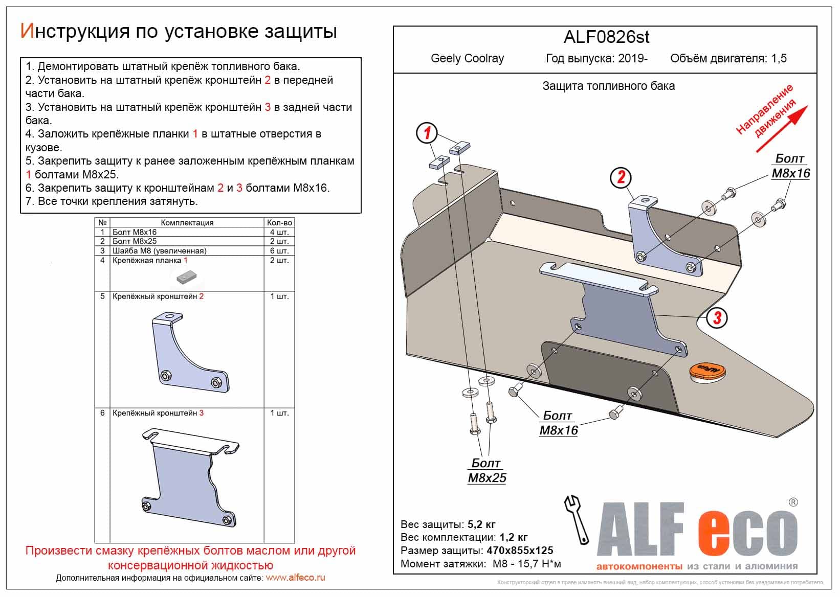 Защита топливного бака ALFeco арт. ALF0826st изготовлена из стали толщиной 2мм специально для автомобиля Geely Coolray 2019-. Обеспечивает надежную защиту агрегатов от механических повреждений и попадания дорожной грязи и других предметов, встречающихся на проезжей части, способных зачастую нанести серьезный вред автомобилю. В комплекте идет весь необходимый крепеж для установки. Наличие можно уточнить по телефону. Возможна установка в нашем автосервисе по предварительной записи