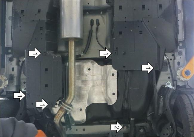 Обеспечивает надежную защиту агрегатов от механических повреждений и попадания дорожной грязи и других предметов, встречающихся на проезжей части, способных зачастую нанести серьезный вред автомобилю. В комплекте идет весь необходимый крепеж для установки.