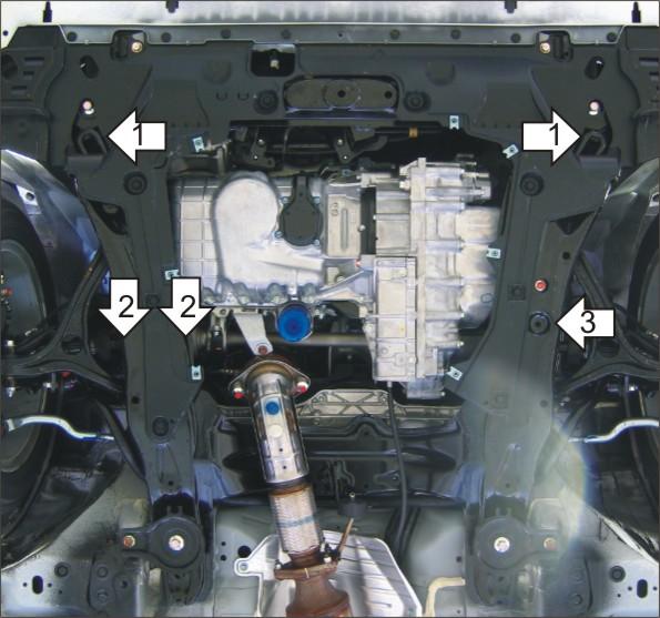 Защита (Двигатель, Коробка переключения передач) Motodor 30103 изготовлена из алюминия толщиной 5 мм специально для автомобиля Honda Accord VIII 2008-2012. Обеспечивает надежную защиту агрегатов от механических повреждений и попадания дорожной грязи и других предметов, встречающихся на проезжей части, способных зачастую нанести серьезный вред автомобилю. В комплекте идет весь необходимый крепеж для установки. Срок поставки защиты составляет 1-3 дня, наличие можно уточнить по телефону. Возможна установка в нашем автосервисе по предварительной записи