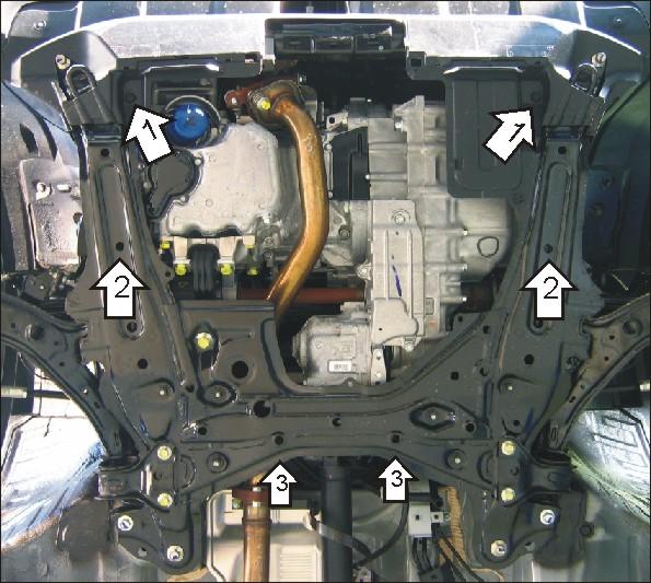 Защита (Двигатель, Коробка переключения передач) Motodor 30103 изготовлена из стали толщиной 2 мм специально для автомобиля Honda CR-V III 2006-2009. Обеспечивает надежную защиту агрегатов от механических повреждений и попадания дорожной грязи и других предметов, встречающихся на проезжей части, способных зачастую нанести серьезный вред автомобилю. В комплекте идет весь необходимый крепеж для установки. Срок поставки защиты составляет 1-3 дня, наличие можно уточнить по телефону. Возможна установка в нашем автосервисе по предварительной записи