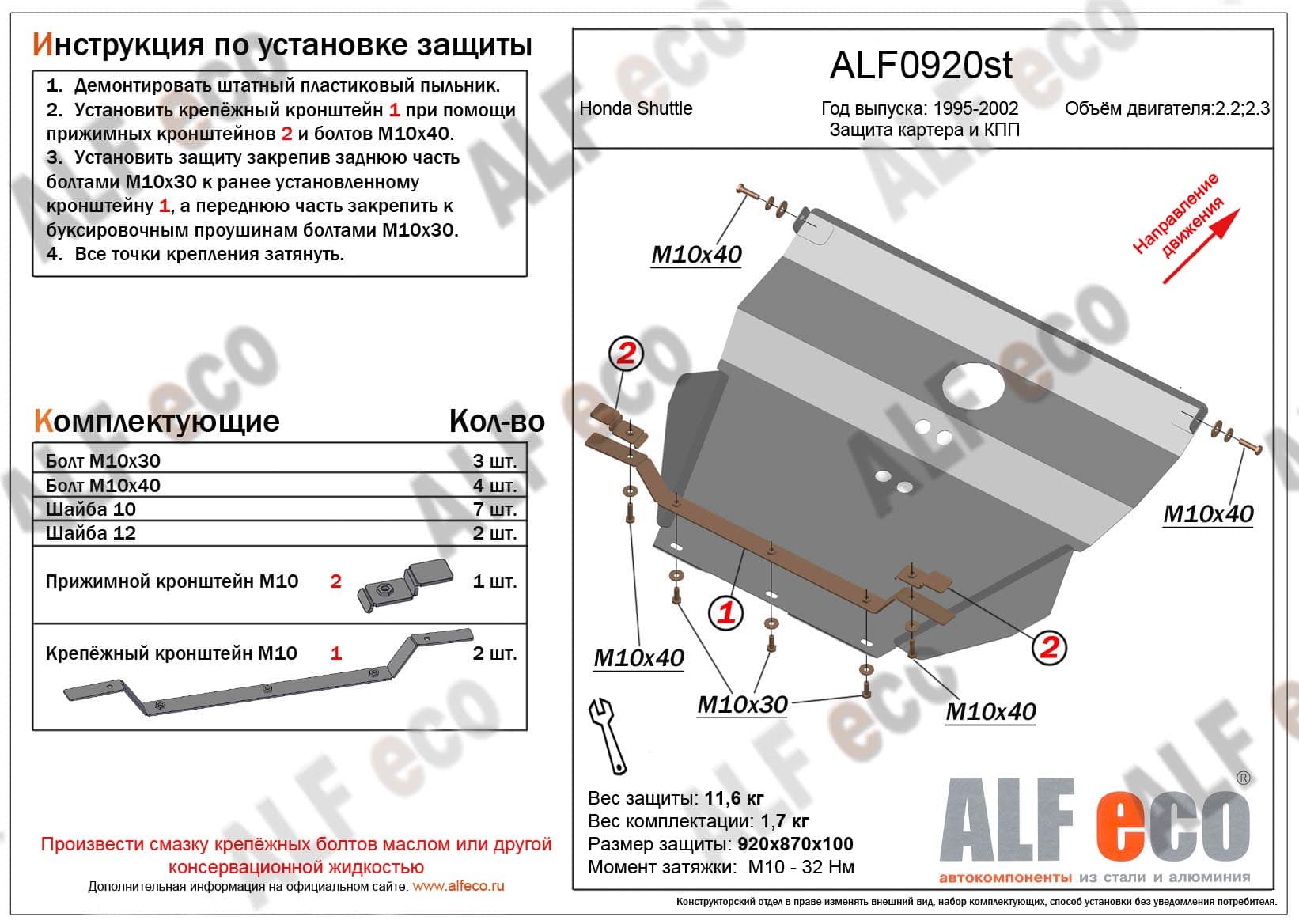 Защита картера и КПП ALFeco арт. ALF0920st изготовлена из стали толщиной 2мм специально для автомобиля Honda Shuttle 1995-2002. Обеспечивает надежную защиту агрегатов от механических повреждений и попадания дорожной грязи и других предметов, встречающихся на проезжей части, способных зачастую нанести серьезный вред автомобилю. В комплекте идет весь необходимый крепеж для установки. Наличие можно уточнить по телефону. Возможна установка в нашем автосервисе по предварительной записи