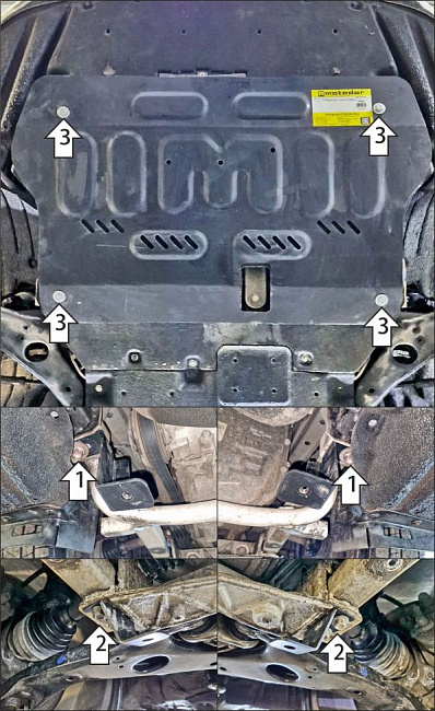 Защита(Двигатель, Коробка переключения передач) Motodor 73905 изготовлена из стали толщиной 2 мм специально для автомобиля Hongqi H5. Обеспечивает надежную защиту агрегатов от механических повреждений и попадания дорожной грязи и других предметов, встречающихся на проезжей части, способных зачастую нанести серьезный вред автомобилю. В комплекте идет весь необходимый крепеж для установки. Возможна установка в нашем автосервисе по предварительной записи