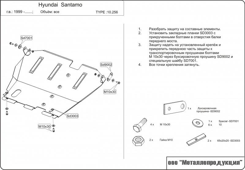 Приобретая стальную защиту 10.0256 для HYUNDAI Santamo 1998 - 2003, вы можете установить ее в нашем сервисе. Стоимость установки от 1100 рублей за лист, предварительно необходимо записаться по телефону на удобное для вас время.