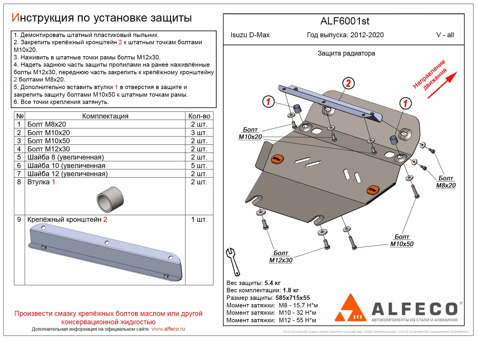 Защита  радиатора Isuzu D-Max 2012-2020 V-all , ALFeco, сталь 0мм, арт. ALF6001st
