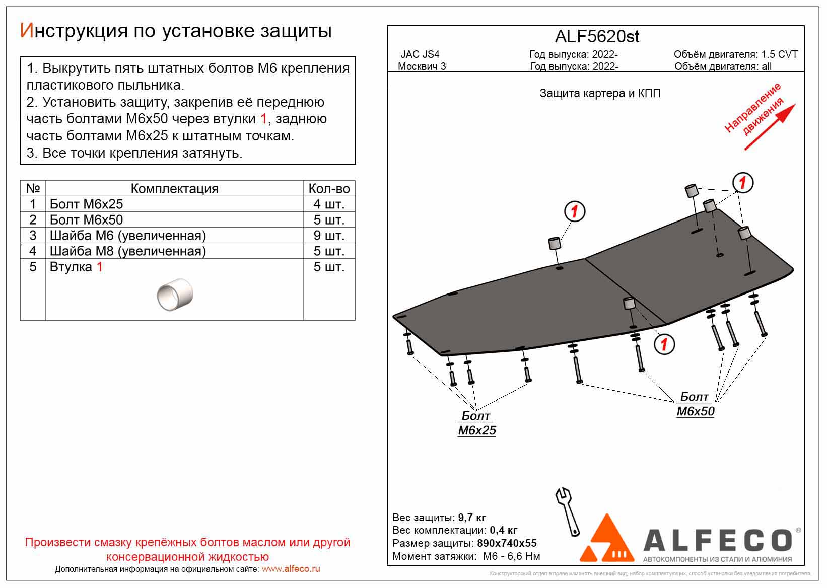 Защита картера и КПП ALFeco арт. ALF5620al изготовлена из алюминия толщиной 4мм специально для автомобиля Москвич 3 2022-. Обеспечивает надежную защиту агрегатов от механических повреждений и попадания дорожной грязи и других предметов, встречающихся на проезжей части, способных зачастую нанести серьезный вред автомобилю. В комплекте идет весь необходимый крепеж для установки. Наличие можно уточнить по телефону. Возможна установка в нашем автосервисе по предварительной записи