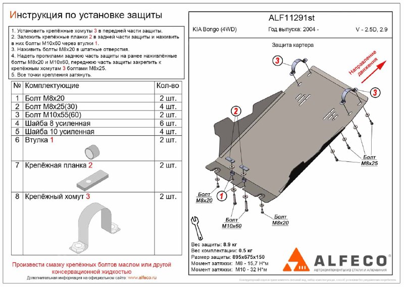 Защита картера ALFeco арт. ALF11291al изготовлена из алюминия толщиной 4мм специально для автомобиля Kia Bongo 4WD 2004-. Обеспечивает надежную защиту агрегатов от механических повреждений и попадания дорожной грязи и других предметов, встречающихся на проезжей части, способных зачастую нанести серьезный вред автомобилю. В комплекте идет весь необходимый крепеж для установки. Наличие можно уточнить по телефону. Возможна установка в нашем автосервисе по предварительной записи