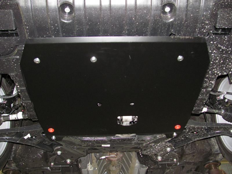 Защита картера и КПП (11.2243) Sheriff изготовлена из стали толщиной 2,0 мм специально для автомобиля KIA Cerato 2013 - 2018. Данное изделие обеспечивает надежную защиту от механических воздействий, предохраняет подкапотное пространство от попадания грязи и пыли, а также способствует улучшению аэродинамики автомобиля за счет оптимизации обтекаемости моторного отсека снизу.