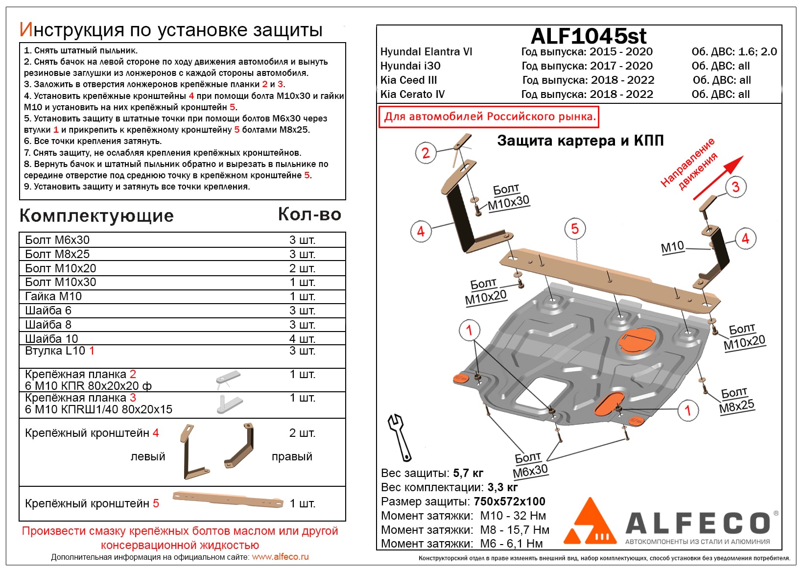 Защита картера и КПП ALFeco арт. ALF1045st-3 изготовлена из стали толщиной 1.5мм специально для автомобиля Kia Cerato IV 2018-2022. Обеспечивает надежную защиту агрегатов от механических повреждений и попадания дорожной грязи и других предметов, встречающихся на проезжей части, способных зачастую нанести серьезный вред автомобилю. В комплекте идет весь необходимый крепеж для установки. Наличие можно уточнить по телефону. Возможна установка в нашем автосервисе по предварительной записи