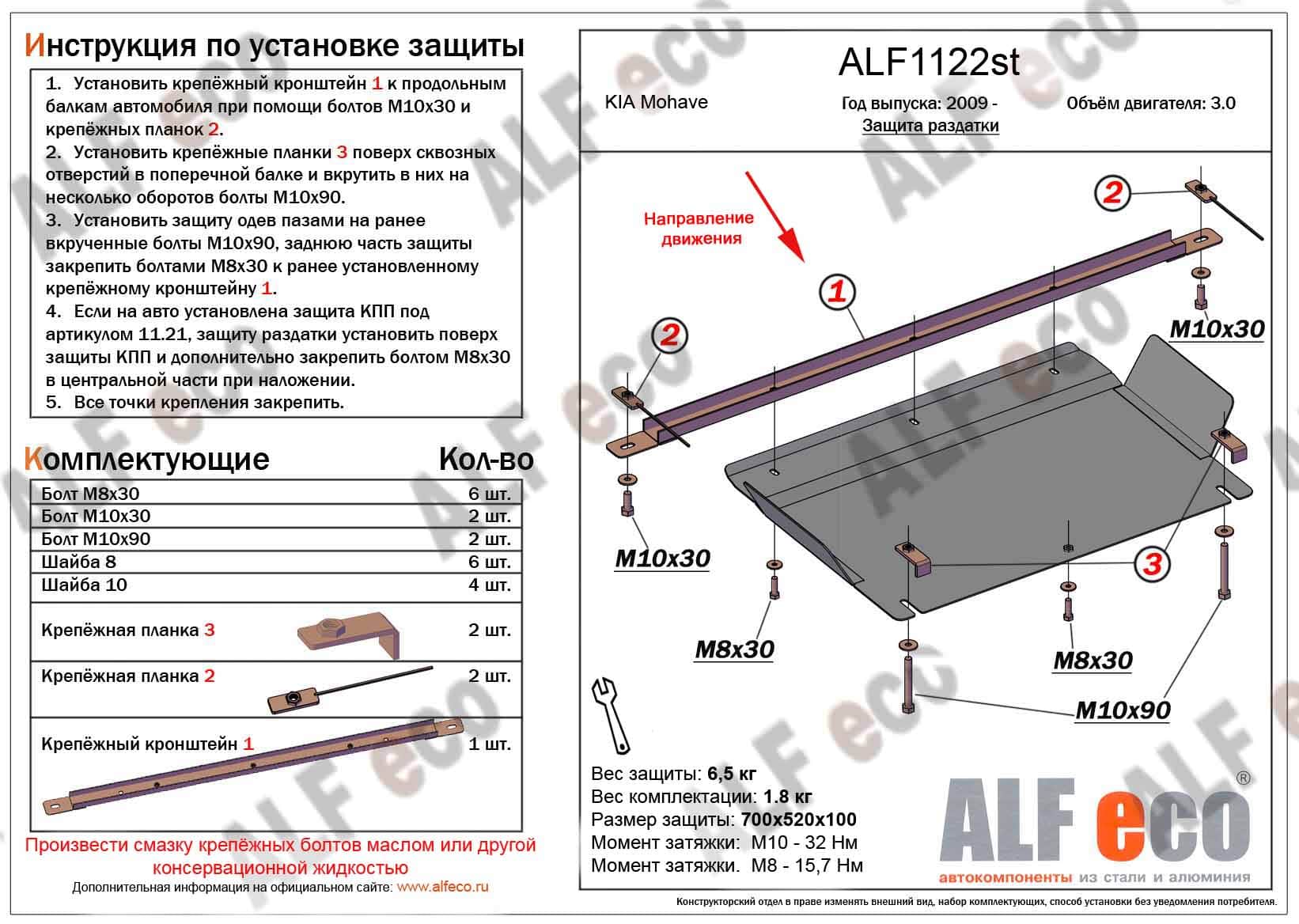 Защита РК ALFeco арт. ALF1122st-1 изготовлена из стали толщиной 2мм специально для автомобиля Kia Mohave (HM) рестайлинг 2017-2020. Обеспечивает надежную защиту агрегатов от механических повреждений и попадания дорожной грязи и других предметов, встречающихся на проезжей части, способных зачастую нанести серьезный вред автомобилю. В комплекте идет весь необходимый крепеж для установки. Наличие можно уточнить по телефону. Возможна установка в нашем автосервисе по предварительной записи