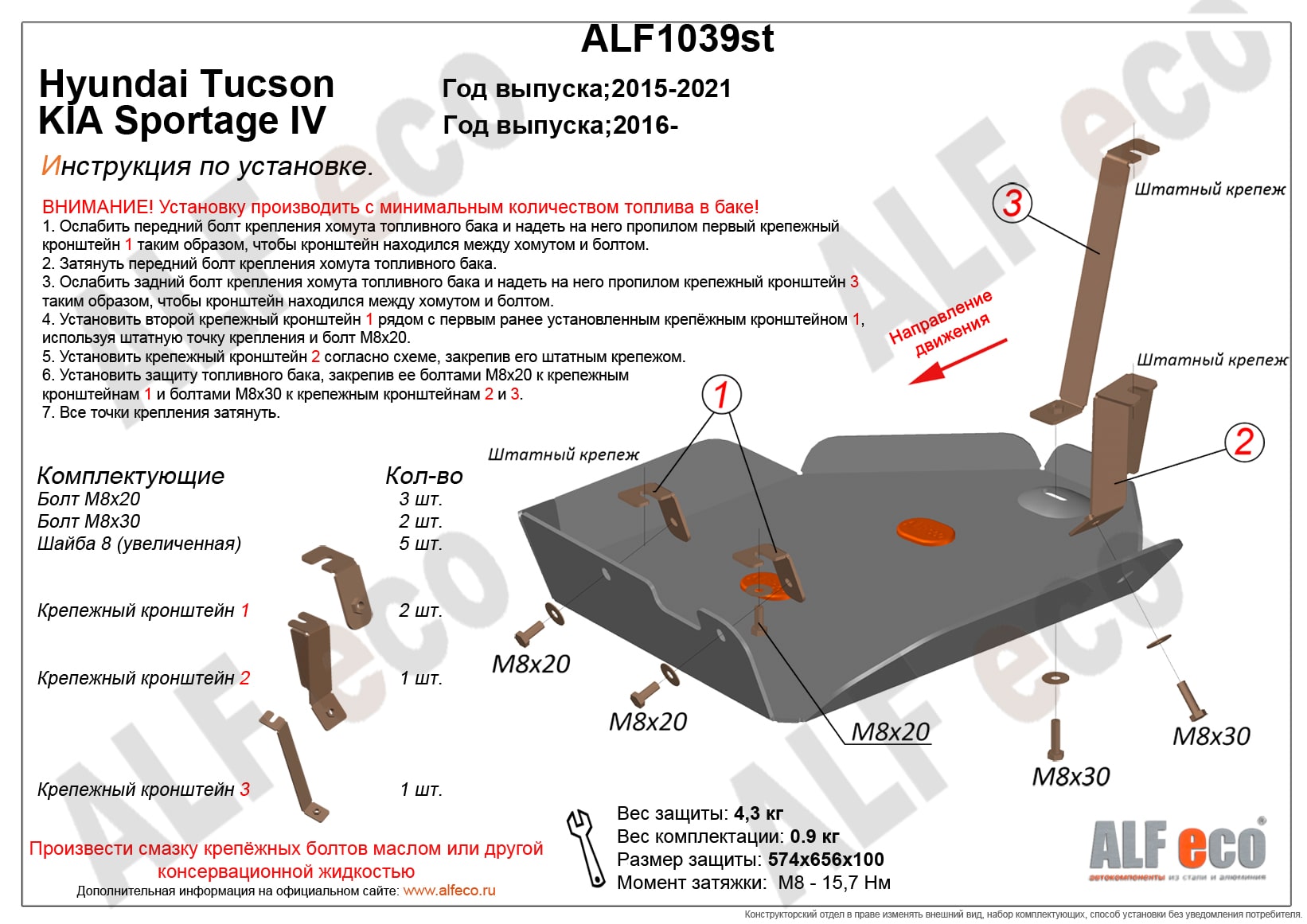 Защита топливного бака ALFeco арт. ALF1039al-1 изготовлена из алюминия толщиной 4мм специально для автомобиля Kia Sportage IV 2016-2022. Обеспечивает надежную защиту агрегатов от механических повреждений и попадания дорожной грязи и других предметов, встречающихся на проезжей части, способных зачастую нанести серьезный вред автомобилю. В комплекте идет весь необходимый крепеж для установки. Наличие можно уточнить по телефону. Возможна установка в нашем автосервисе по предварительной записи