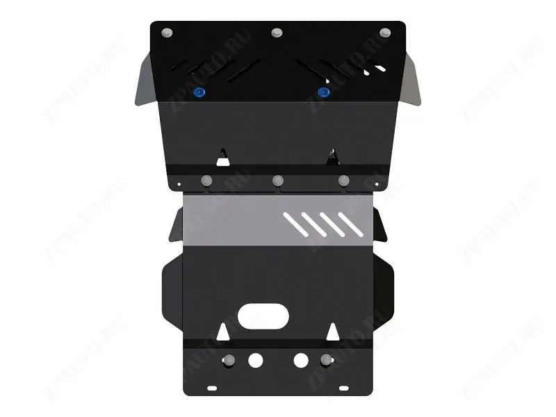 Защита картера (24.3016) Sheriff изготовлена из стали толщиной 2,5 мм специально для автомобиля TOYOTA Land Cruiser 150 (GX460) 2010 - . Данное изделие обеспечивает надежную защиту от механических воздействий, предохраняет подкапотное пространство от попадания грязи и пыли, а также способствует улучшению аэродинамики автомобиля за счет оптимизации обтекаемости моторного отсека снизу.
