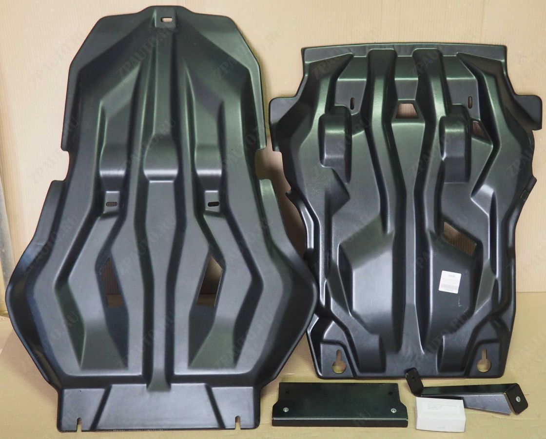 - Комплектация: Защита картера двигателя и КПП, монтажный комплект (кронштейны, болты).