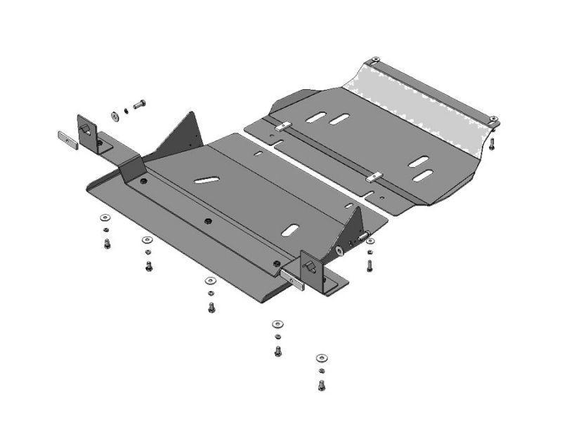 Обеспечивает надежную защиту агрегатов от механических повреждений и попадания дорожной грязи и других предметов, встречающихся на проезжей части, способных зачастую нанести серьезный вред автомобилю. В комплекте идет весь необходимый крепеж для установки.
