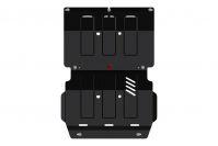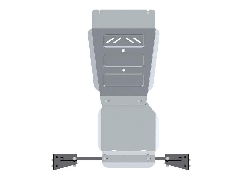 Защита КПП и РК (14.3423) Sheriff изготовлена из алюминия толщиной 4 мм специально для автомобиля MITSUBISHI Pajero Sport III - для 3405, 2969 2016 -. Данное изделие обеспечивает надежную защиту от механических воздействий, предохраняет подкапотное пространство от попадания грязи и пыли, а также способствует улучшению аэродинамики автомобиля за счет оптимизации обтекаемости моторного отсека снизу.