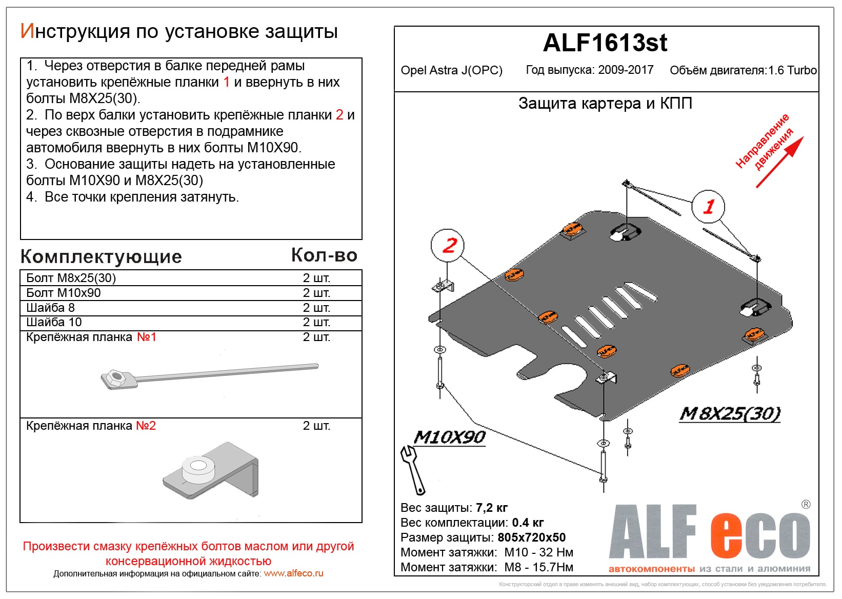 Защита картера и КПП ALFeco арт. ALF1613al изготовлена из алюминия толщиной 4мм специально для автомобиля Opel Astra J 2009-2017. Обеспечивает надежную защиту агрегатов от механических повреждений и попадания дорожной грязи и других предметов, встречающихся на проезжей части, способных зачастую нанести серьезный вред автомобилю.