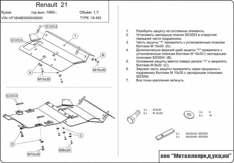 Приобретая стальную защиту 18.0482 для RENAULT 21 1986 - 1994, вы можете установить ее в нашем сервисе. Стоимость установки от 1100 рублей за лист, предварительно необходимо записаться по телефону на удобное для вас время.