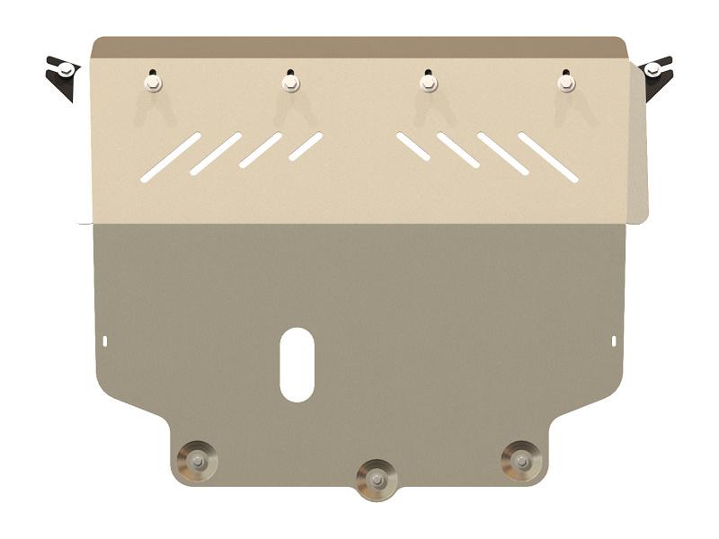 Защита картера и КПП (26.2422) Sheriff изготовлена из алюминия толщиной 5 мм специально для автомобиля SEAT Alhambra 2013 - 2020. Данное изделие обеспечивает надежную защиту от механических воздействий, предохраняет подкапотное пространство от попадания грязи и пыли, а также способствует улучшению аэродинамики автомобиля за счет оптимизации обтекаемости моторного отсека снизу.