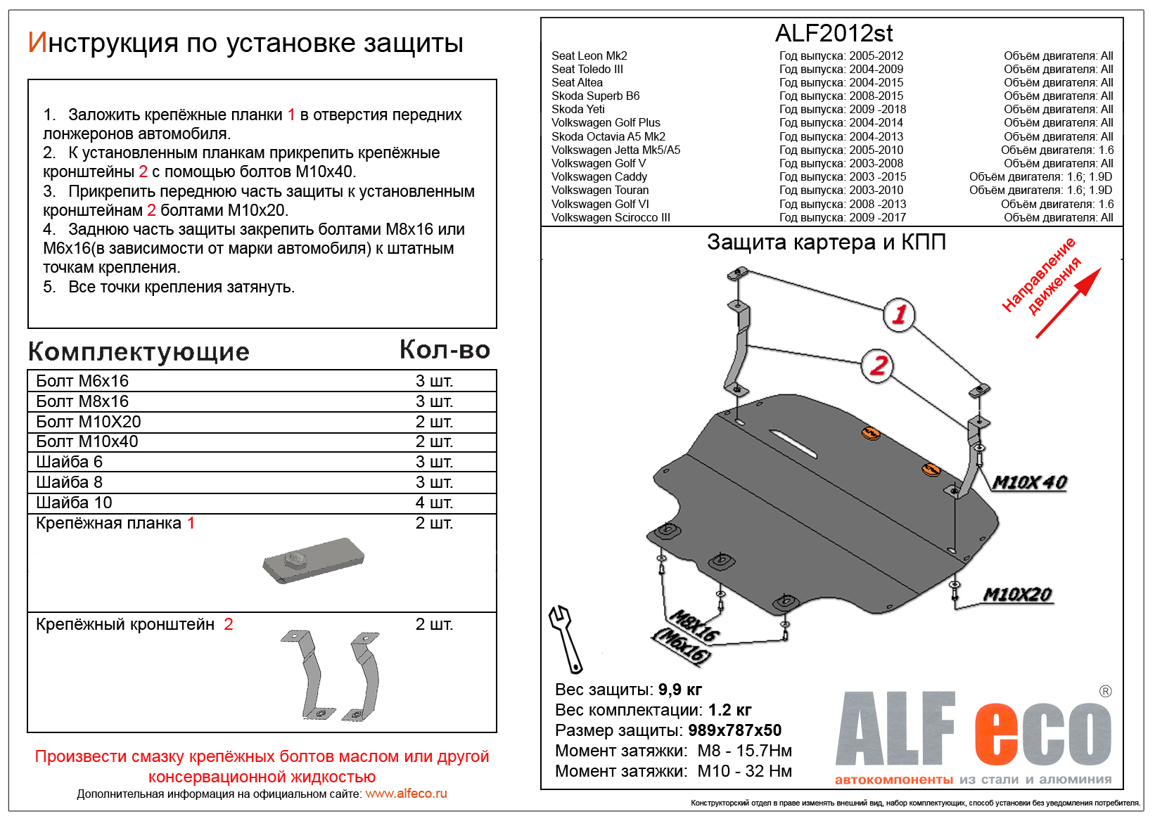 Защита картера и КПП ALFeco арт. ALF2012st-1 изготовлена из стали толщиной 2мм специально для автомобиля Seat Altea 2004-2015. Обеспечивает надежную защиту агрегатов от механических повреждений и попадания дорожной грязи и других предметов, встречающихся на проезжей части, способных зачастую нанести серьезный вред автомобилю. В комплекте идет весь необходимый крепеж для установки. Наличие можно уточнить по телефону. Возможна установка в нашем автосервисе по предварительной записи