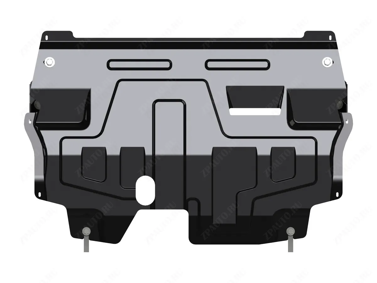 Защита картера и КПП (21.SL 9001 V1) Sheriff изготовлена из стали толщиной 1,5 мм специально для автомобиля SKODA Roomster (Praktik) (Scout) 2009 - 2015. Данное изделие обеспечивает надежную защиту от механических воздействий, предохраняет подкапотное пространство от попадания грязи и пыли, а также способствует улучшению аэродинамики автомобиля за счет оптимизации обтекаемости моторного отсека снизу.