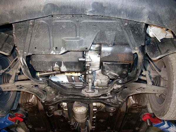 Защита картера и МКП (21.0033) Sheriff изготовлена из стали толщиной 2,0 мм специально для автомобиля SKODA Octavia A4 (Tour) от 90 лс 1996 - 2010. Данное изделие обеспечивает надежную защиту от механических воздействий, предохраняет подкапотное пространство от попадания грязи и пыли, а также способствует улучшению аэродинамики автомобиля за счет оптимизации обтекаемости моторного отсека снизу.