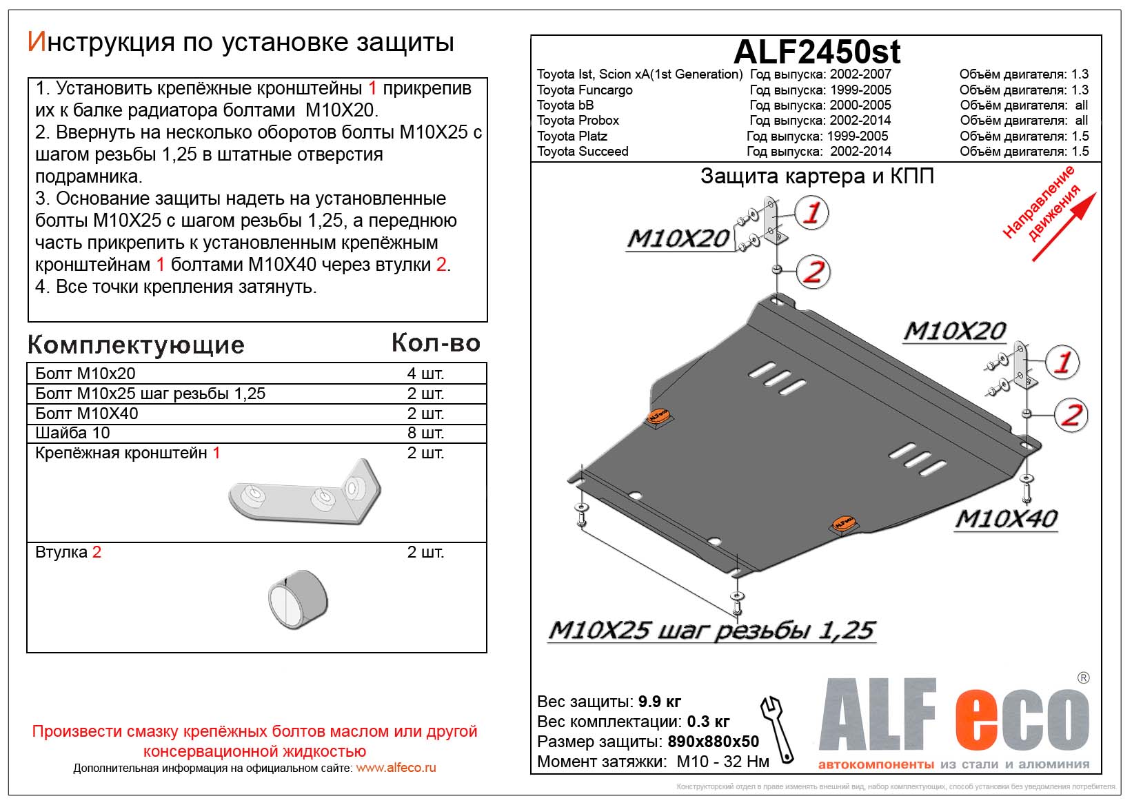 Защита картера и КПП (штамповка) ALFeco арт. ALF2450al-3 изготовлена из алюминия толщиной 4мм специально для автомобиля Toyota Platz (XP10) 1999-2005. Обеспечивает надежную защиту агрегатов от механических повреждений и попадания дорожной грязи и других предметов, встречающихся на проезжей части, способных зачастую нанести серьезный вред автомобилю. В комплекте идет весь необходимый крепеж для установки. Наличие можно уточнить по телефону. Возможна установка в нашем автосервисе по предварительной записи