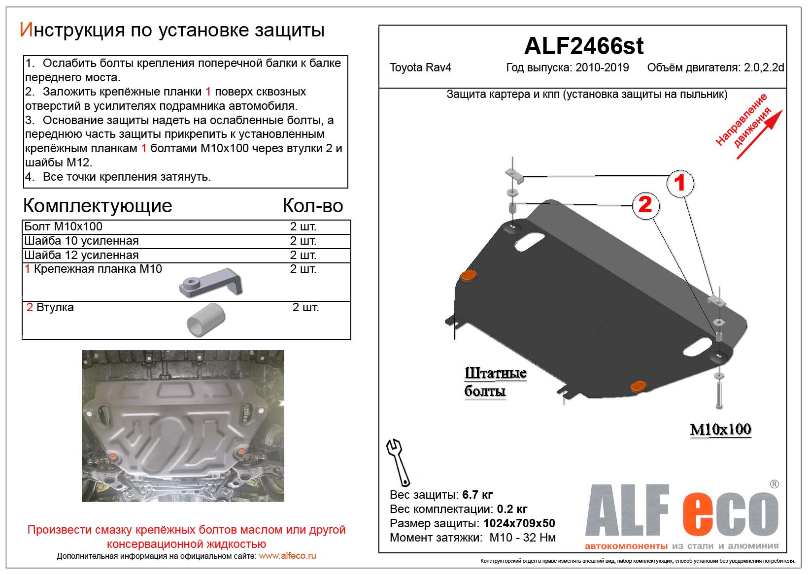 Защита картера и КПП (установка защиты на пыльник) (большая) ALFeco арт. ALF2466st-1 изготовлена из стали толщиной 2мм специально для автомобиля Toyota Rav4 IV (XA40) 2012-2019. Обеспечивает надежную защиту агрегатов от механических повреждений и попадания дорожной грязи и других предметов, встречающихся на проезжей части, способных зачастую нанести серьезный вред автомобилю. В комплекте идет весь необходимый крепеж для установки. Наличие можно уточнить по телефону. Возможна установка в нашем автосервисе по предварительной записи