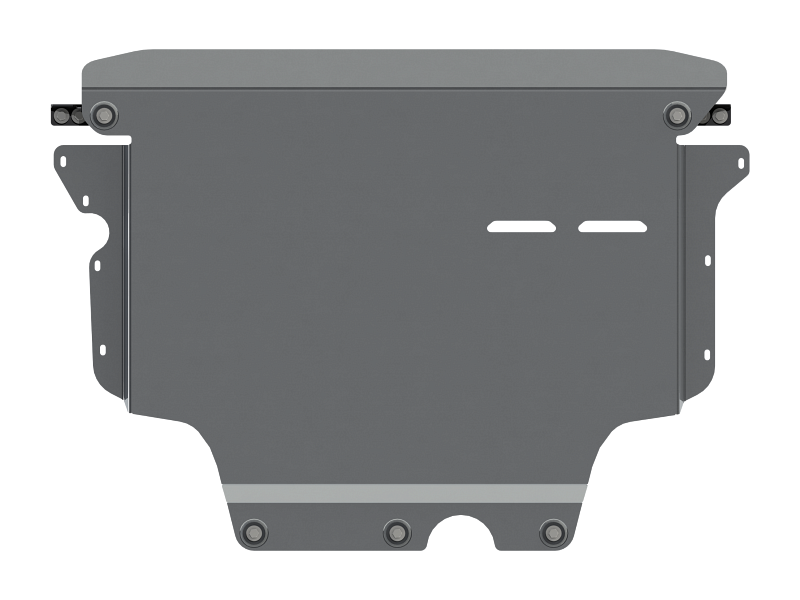 Защита картера и КПП (26.3676) Sheriff изготовлена из алюминия толщиной 5 мм специально для автомобиля VOLKSWAGEN Tiguan 2017 -. Данное изделие обеспечивает надежную защиту от механических воздействий, предохраняет подкапотное пространство от попадания грязи и пыли, а также способствует улучшению аэродинамики автомобиля за счет оптимизации обтекаемости моторного отсека снизу.